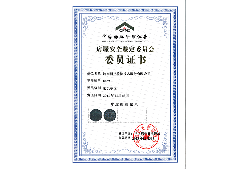 中國物業(yè)管理協(xié)會房屋安全鑒定委員會委員證書