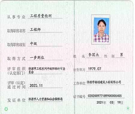 中級工程師(工程質量檢測)