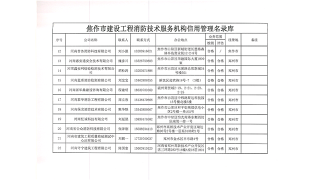 河南固瑞工程質量檢測有限公司是經河南省工商局注冊,省消防局批準的獨立法人企業。是省內消防驗收、消防檢測、消防維保,消防安全評估、電氣檢測、科研開發與技術服務專業一體化的消防驗收檢測機構。聯系電話:張經理 13523490368、13838613981